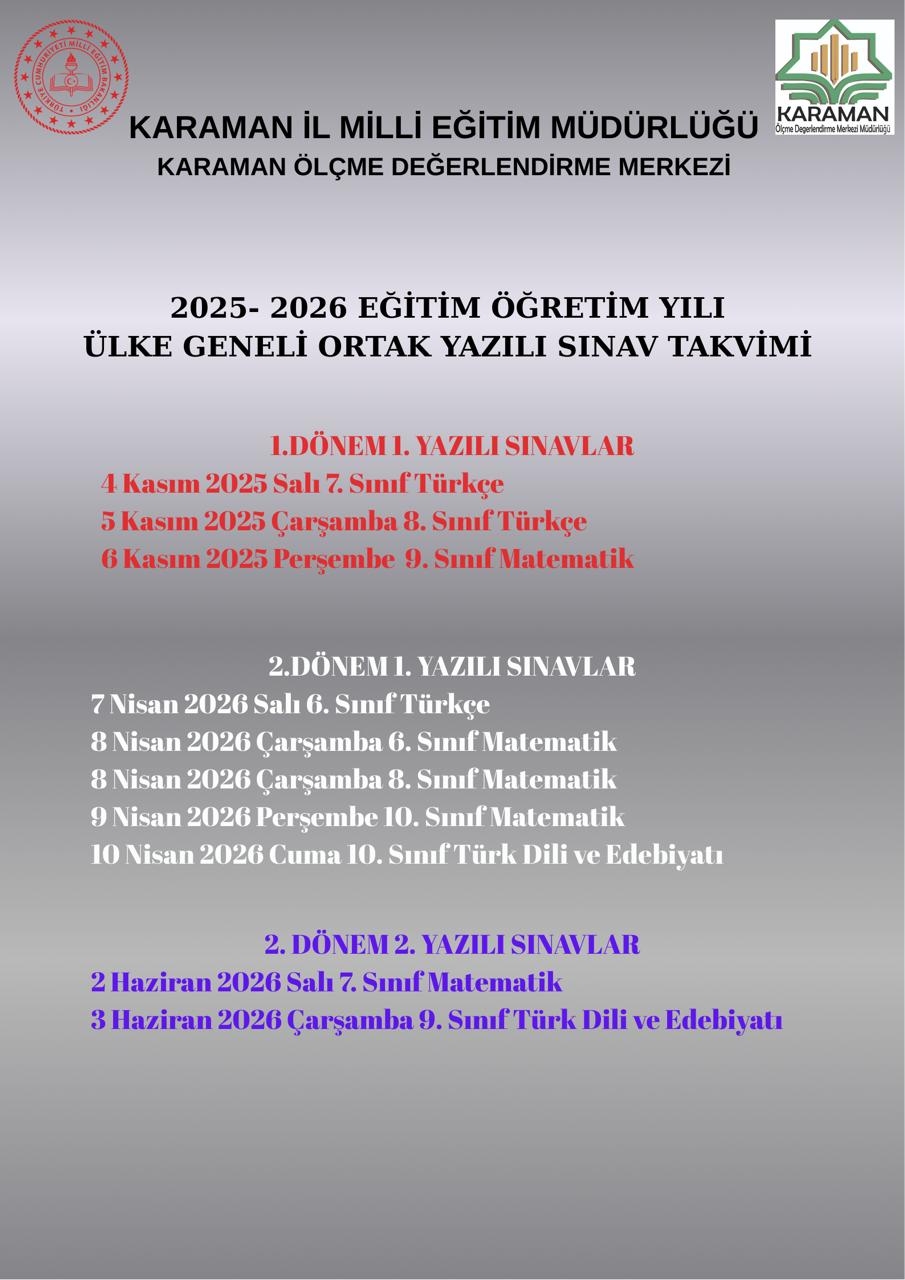 ÜLKE GENELİ ORTAK YAZILI SINAV TARİHLERİ BELLİ OLDU